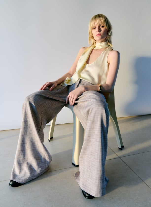 Embrace the winter season with this sweet pom pom hat. The neutral beige alpaca blend knit will keep your head snug during falling temperatures. Pair with a classic overcoat for a timeless cold-weather look.